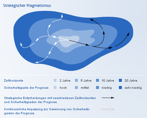 Wichtig ist stets die Entwicklung gestaffelter Zeithorizonte für das, was schon kurzfristig auf der Grundlage neuester Kenntnisse, für das, was erst mittelfristig im Rahmen anpassungsbedürftiger Prognose und schliesslich für das, was nur langfristig unter Bedingungen wissenschaftlicher Unsicherheit erreichbar erscheint. Wenn etwas kurzfristig nicht erreichbar erscheint, rechtfertigt das nicht gleich den Schluß, es sei unmöglich. Dynamisches Handeln unterscheidet sich von dogmatischer Verharrung durch intensive Nutzung jeder Phase der Zeitschiene.
